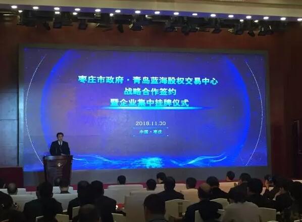 2018年11月30日,棗莊市政府與青島藍(lán)海股權(quán)交易中心戰(zhàn)略合作簽約暨棗莊企業(yè)集中掛牌儀式成功在棗莊市開元鳳鳴山莊開元廳舉辦!棗莊市政府副市長(zhǎng)周宗安,棗莊市政府副秘書長(zhǎng)趙作亮,棗莊市地方金融監(jiān)管局局長(zhǎng)劉中波,棗莊市市中區(qū)區(qū)委副書記、區(qū)長(zhǎng)王輝等市區(qū)領(lǐng)導(dǎo);棗莊市直部門、各區(qū)委區(qū)政府及區(qū)直部門,4家基金公司,15家銀行機(jī)構(gòu)、8家證券公司駐棗分支機(jī)構(gòu)等負(fù)責(zé)人蒞臨此次掛牌儀式,棗莊市政府副市長(zhǎng)周宗安和藍(lán)海股權(quán)交易中心總經(jīng)理常欣分別致歡迎辭。
